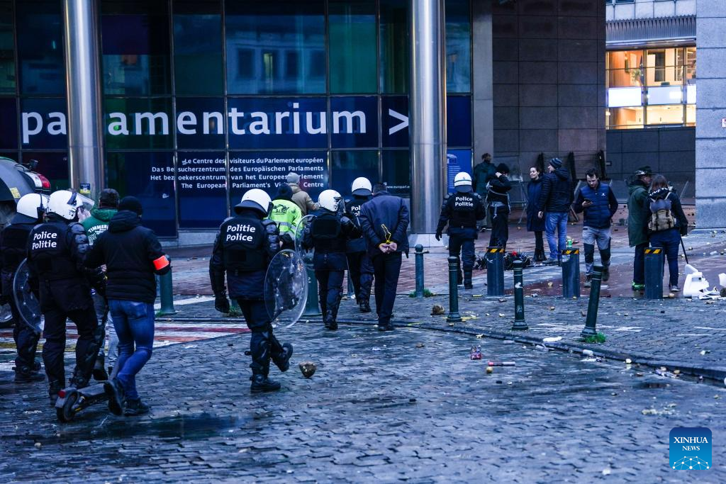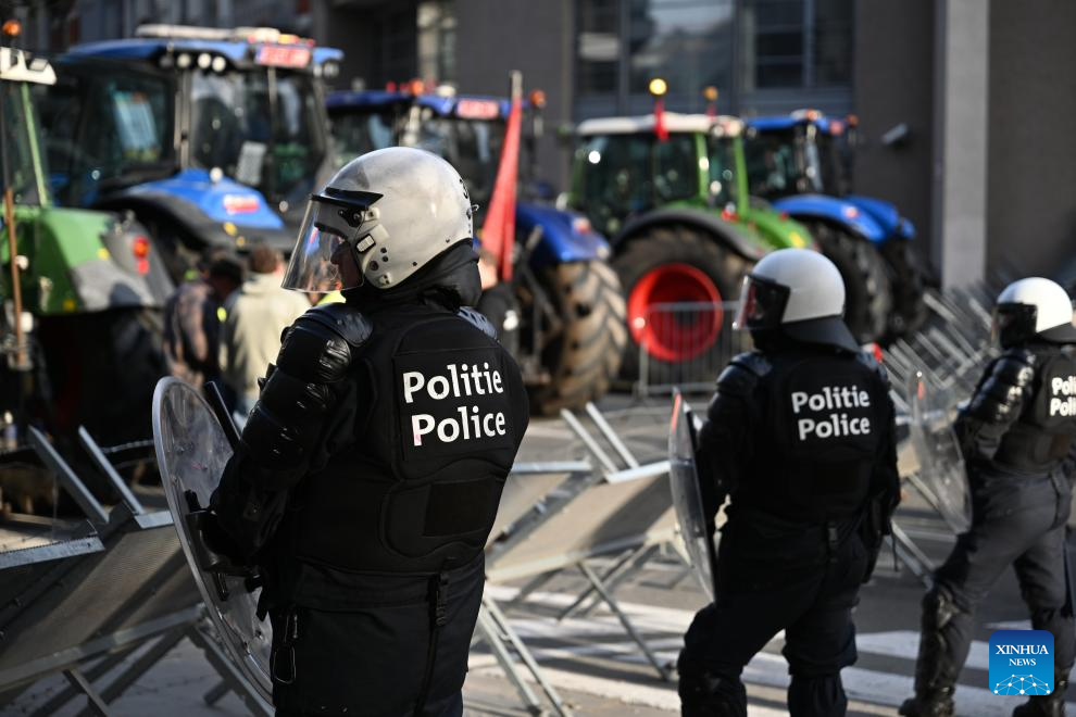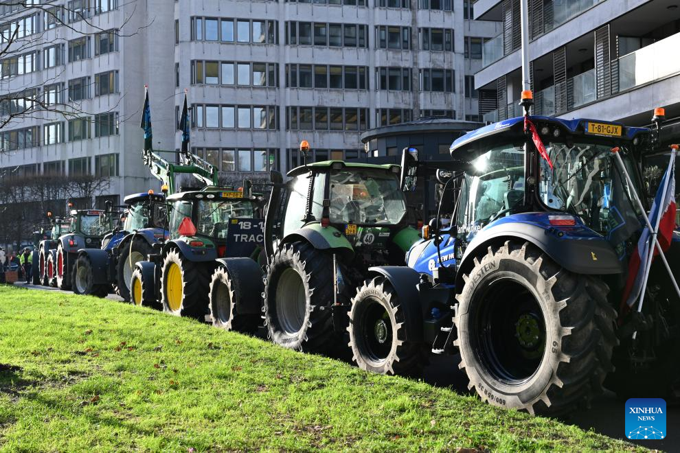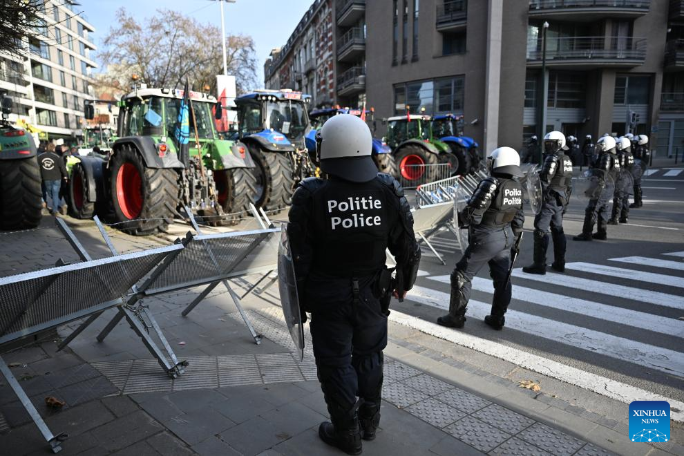 Bruxelas, 18 dez (Xinhua) -- Milhares de agricultores de toda a Europa se reuniram perto do Parlamento Europeu e do Edifício Europa, em Bruxelas, na quinta-feira, enquanto os líderes da União Europeia (UE) se reuniam para uma cúpula, com um acordo comercial de longa data com o bloco sul-americano Mercosul na agenda.