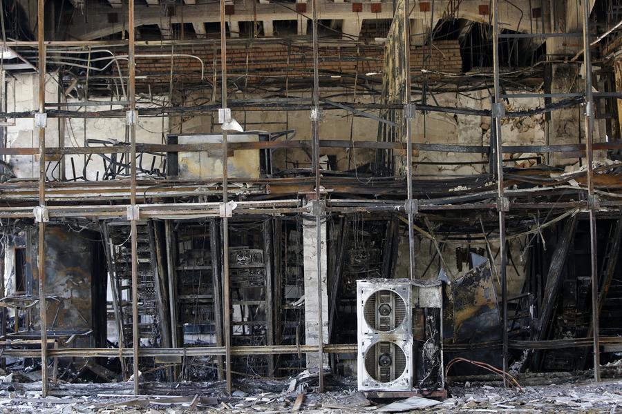 Foto tirada em 19 de junho de 2025 mostra cena após ataque a um prédio da emissora estatal iraniana IRIB em Teerã, Irã. (Xinhua)