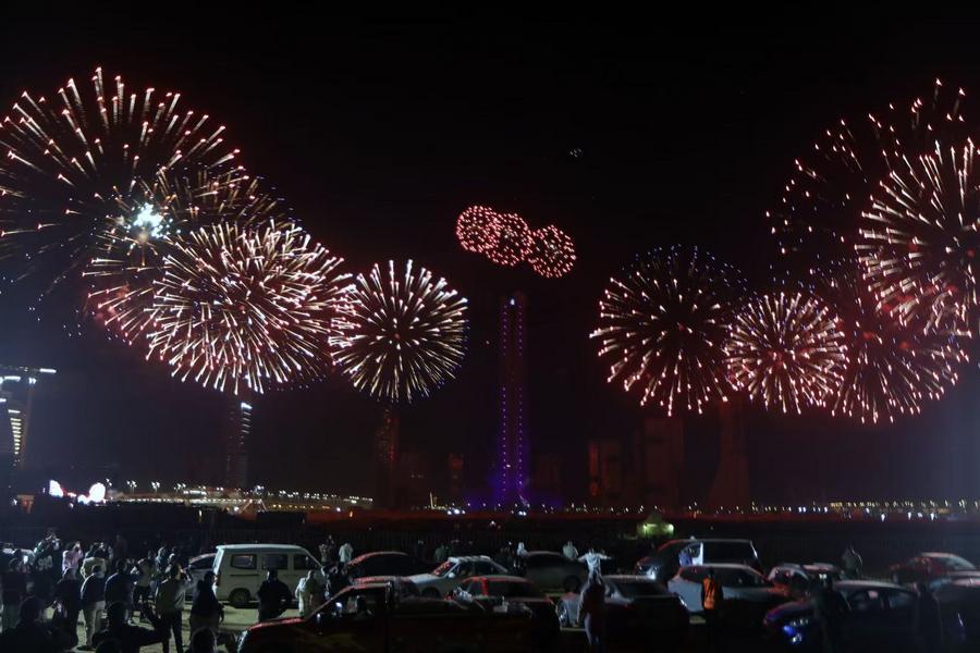 Cairo, 1º jan (Xinhua) -- A nova capital administrativa do Egito recebeu o Ano Novo com uma grande comemoração pública centrada no Distrito Comercial Central (CBD, na sigla em inglês), construído pela China, na quinta-feira, marcando o primeiro grande evento festivo do distrito.