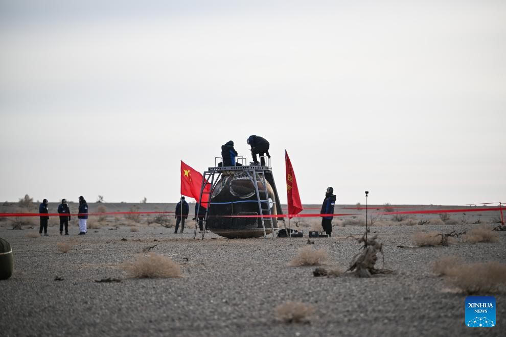 Jiuquan, 19 jan (Xinhua) -- A cápsula de retorno da nave espacial Shenzhou-20, que não transportava astronautas, pousou no local de pouso Dongfeng, na Região Autônoma da Mongólia Interior, no norte da China, às 9h34 (horário de Beijing) desta segunda-feira, segundo a Agência Espacial Tripulada da China (CMSA, em inglês).