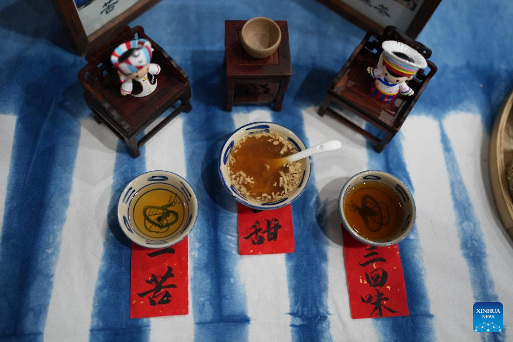 Chá chinês é exibido e oferecido aos visitantes durante um evento de celebração do Ano Novo Chinês em Colombo, Sri Lanka, em 27 de janeiro de 2026.