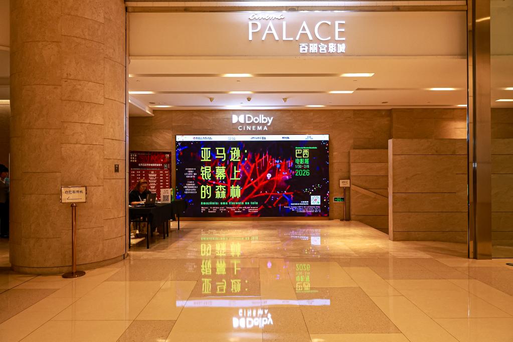 Beijing, 1º fev (Xinhua) -- Marcielle, uma jovem de 13 anos, está sentada às margens do rio Amazonas, e o rio flui lentamente, refletindo seus olhos imaturos, mas firmes. Esta é uma cena no início do filme brasileiro Manas, exibido na cerimônia de abertura do festival de cinema brasileiro "Amazônia: uma floresta na tela", no Palace Cinema (CWTC BJ), em Beijing, na noite de 30 de janeiro de 2026.