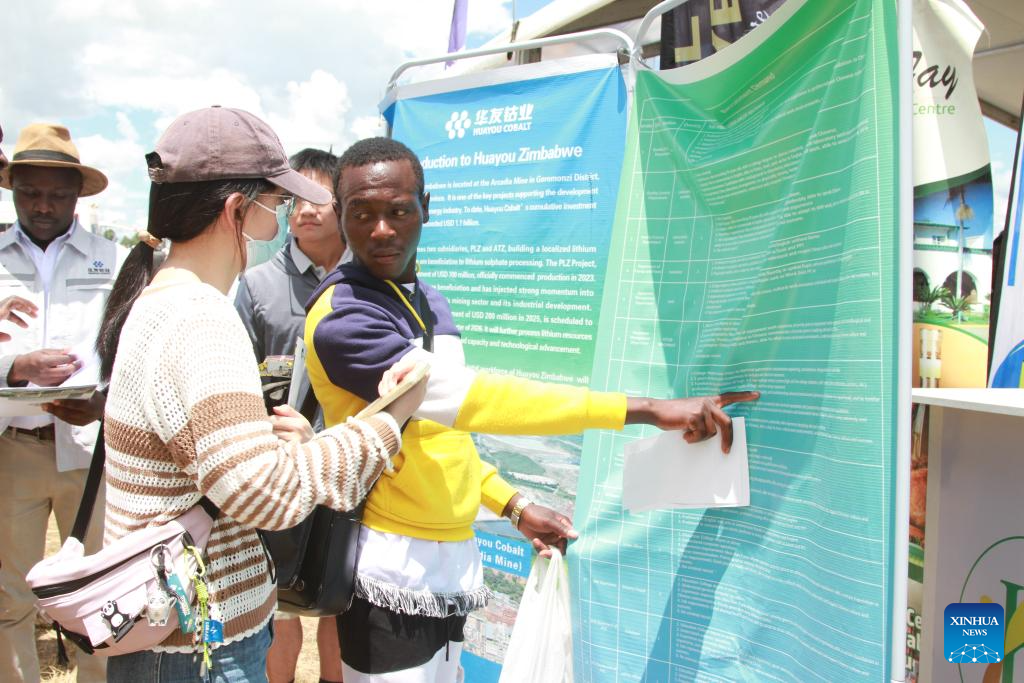 Jovens zimbabuanos perguntam sobre oportunidades de emprego a funcionários de uma empresa chinesa durante uma feira de empregos no distrito de Marondera, província de Mashonaland Leste, Zimbábue, em 21 de fevereiro de 2026. Como o mercado de trabalho continua competitivo para recém-formados, jovens zimbabuanos têm demonstrado crescente interesse em buscar oportunidades de carreira em empresas chinesas, que se tornaram uma importante fonte de emprego no país da África Austral. (Foto de Tafara Mugwara/Xinhua)