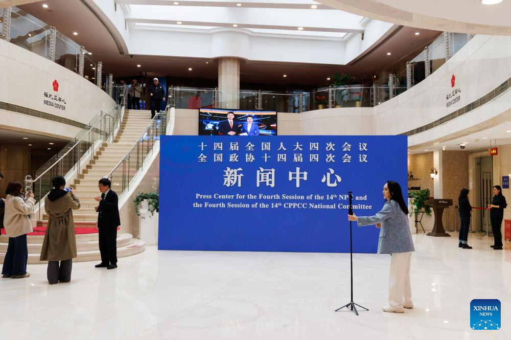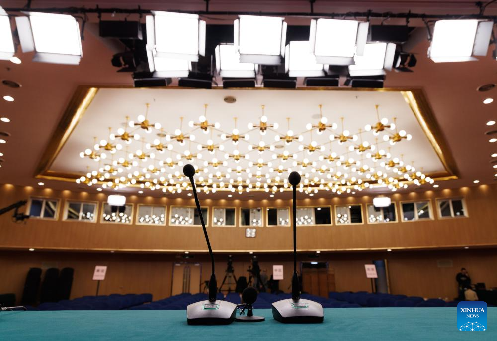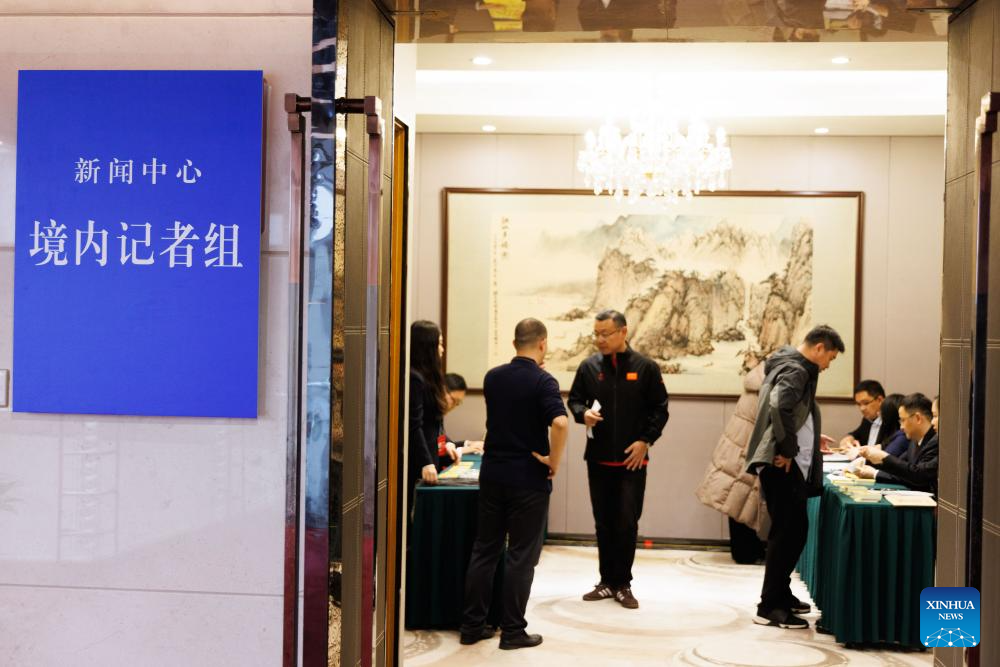 Beijing, 27 fev (Xinhua) -- Um centro de imprensa para as sessões anuais da principal legislatura e do principal órgão consultivo político da China, conhecidas como as "duas sessões", foi inaugurado nesta sexta-feira no Media Center Hotel, em Beijing.