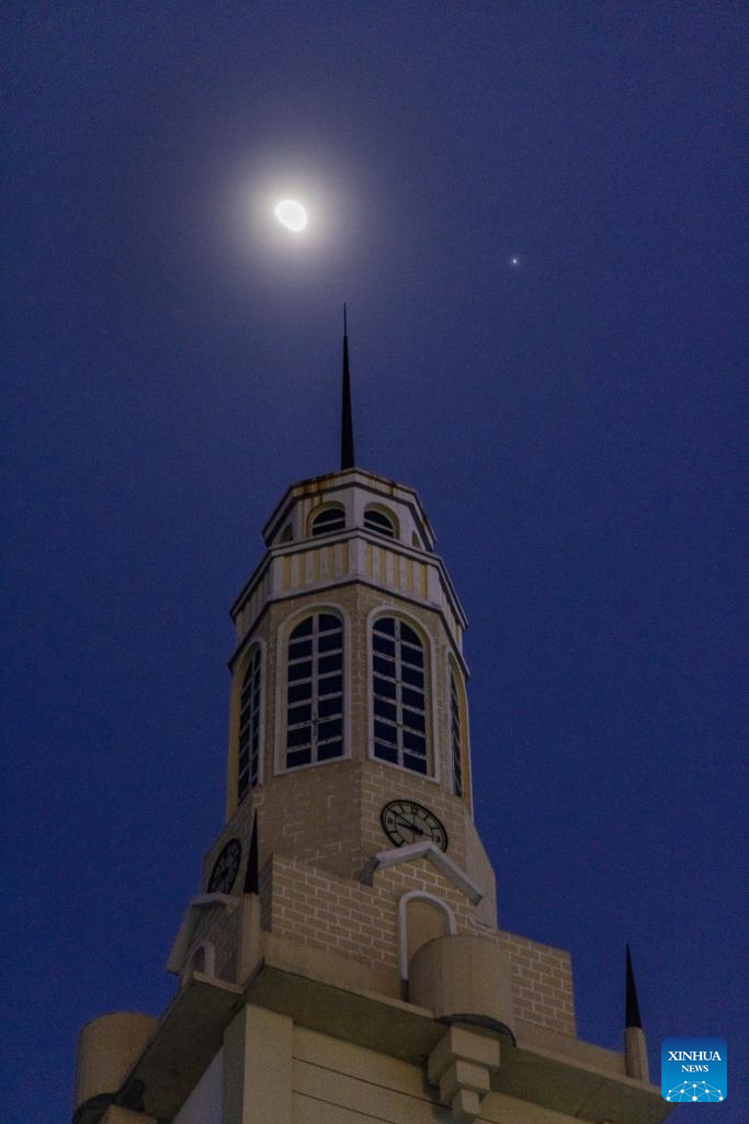 Veja imagens da conjunção entre Lua e Júpiter no céu de Jagdaqi, em Heilongjiang, nordeste da China-Xinhua