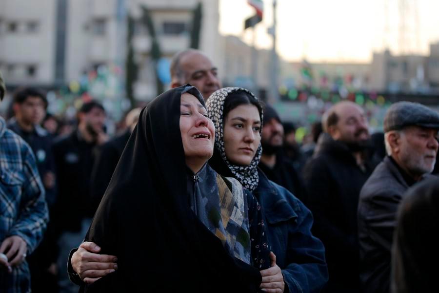 Pessoas se reúnem para lamentar a morte do líder supremo do Irã, o aiatolá Ali Khamenei, em Teerã, Irã, em 1º de março de 2026. (Xinhua)