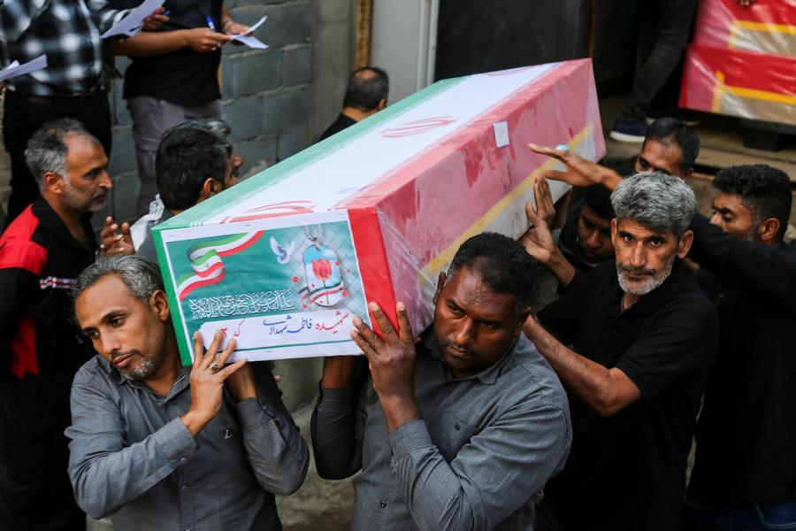 Pessoas participam de uma cerimônia fúnebre coletiva para estudantes e funcionários mortos em um ataque conjunto dos Estados Unidos e de Israel a uma escola em Minab, província de Hormozgan, no sul do Irã, em 3 de março de 2026. (Agência de Notícias Mehr/Divulgação via Xinhua)