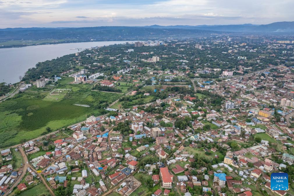 Foto aérea tirada por drone em 27 de fevereiro de 2026 mostra vista de Kisumu, um importante centro econômico e de transporte no oeste do Quênia, a área é conhecida pelo cultivo de cana-de-açúcar e pela produção de açúcar. Um projeto rodoviário realizado pela Power Construction Corporation da China está trazendo mudanças visíveis para a região. (Xinhua/Xie Jianfei)