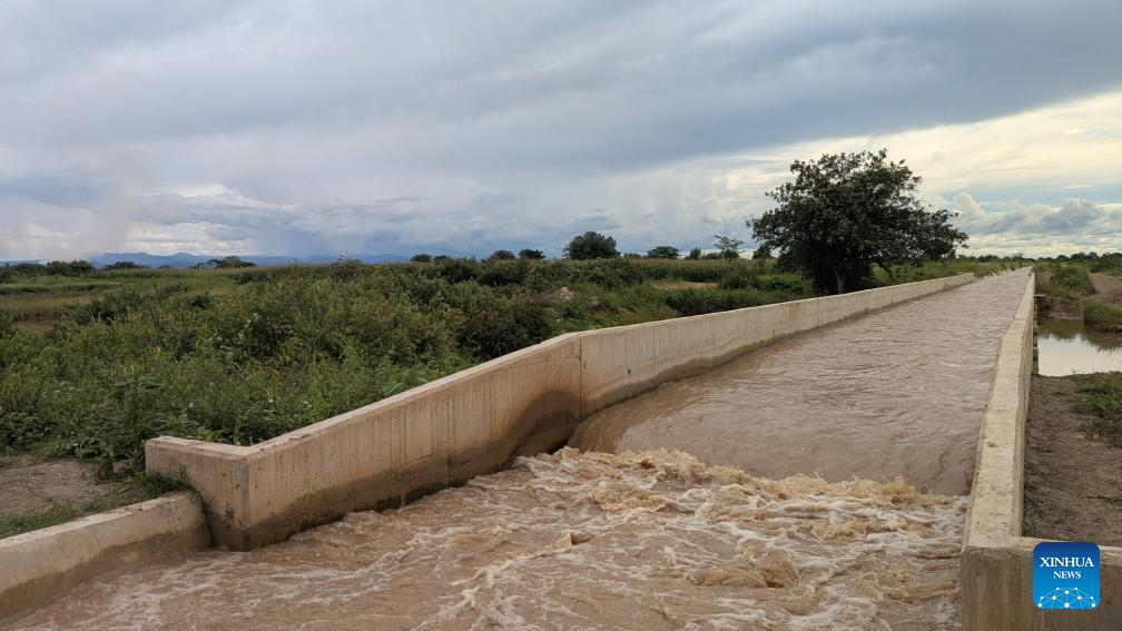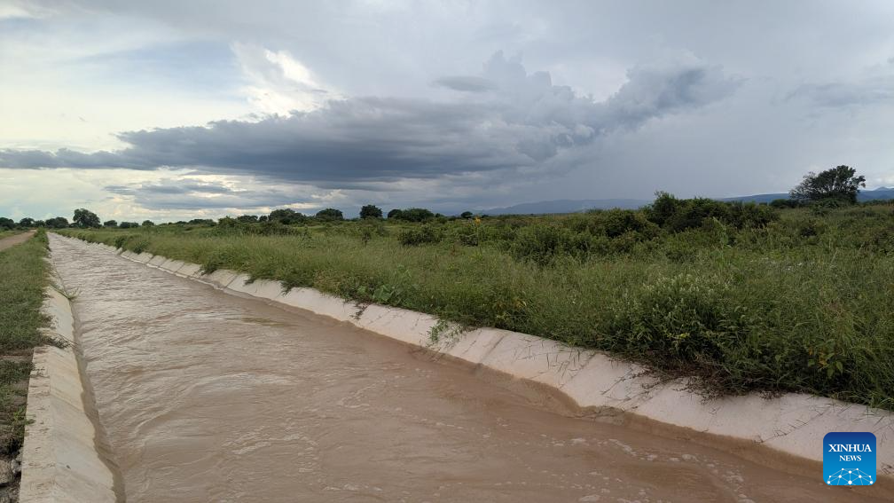 Água flui por canal de irrigação na região de Iringa, Tanzânia, em 5 de janeiro de 2026. (CRJE/Divulgação via Xinhua)