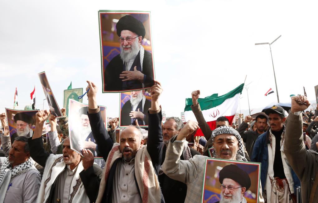 Iemenitas participam de manifestação em solidariedade ao Irã em Sanaa, Iêmen, em 1º de março de 2026. (Foto de Mohammed Mohammed/Xinhua)