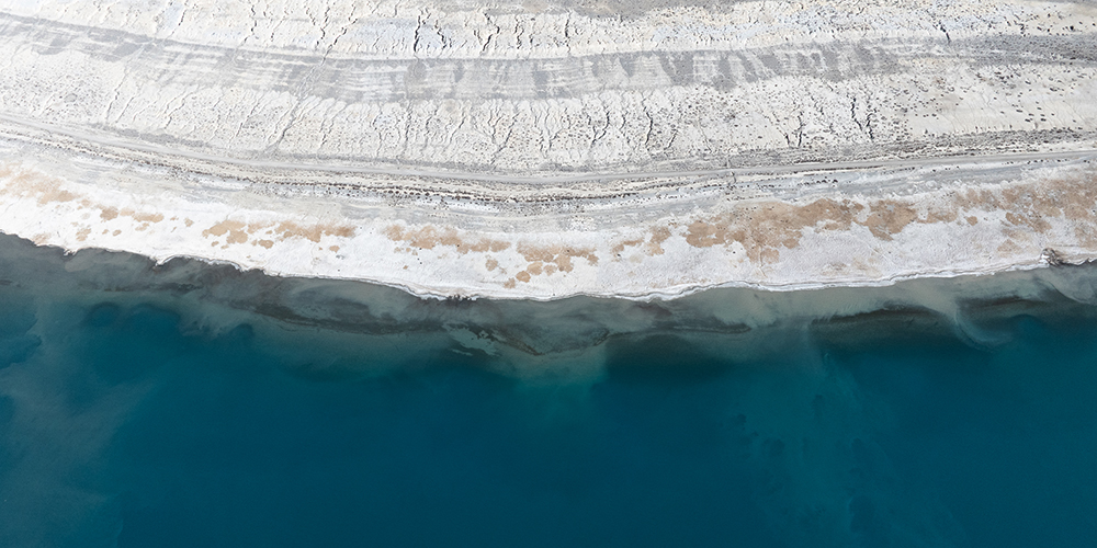 Paisagem de inverno do Lago Baiku, na Cidade de Xigaze, sudoeste da China