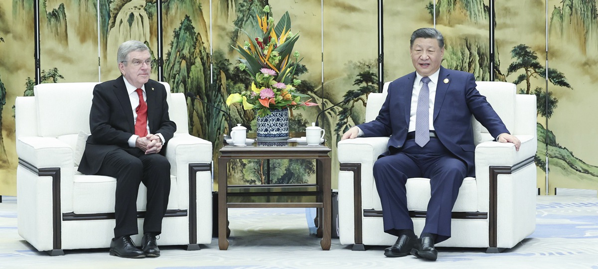 Xi se encontra com a presidente Coventry e o presidente honorário vitalício Bach do COI